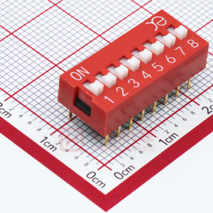 拨码开关 间距2.54mm 8位 直插 红色 凸杆正拨 25mA 24V 寿命3000次