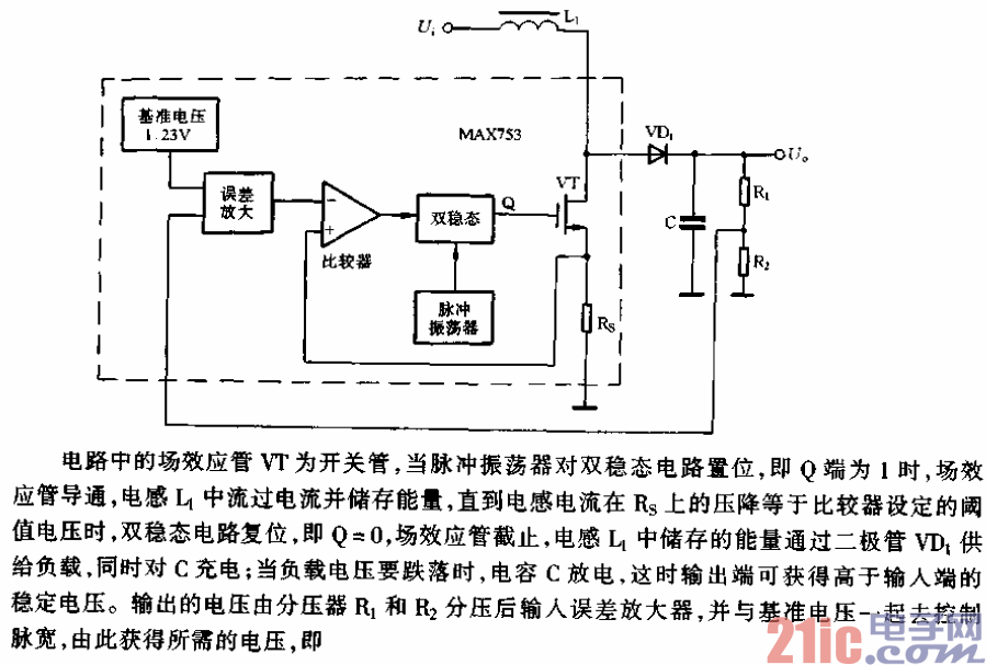 升压DC-DC变换器MAX753电路