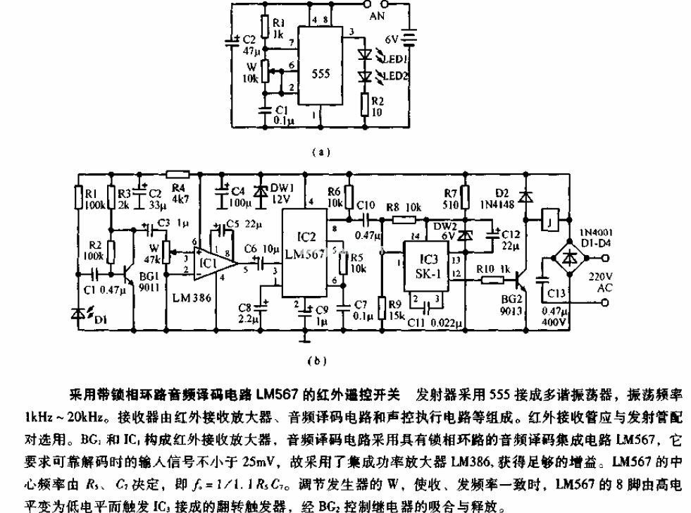 采用锁相环音频译码的红外遥控开关电路图