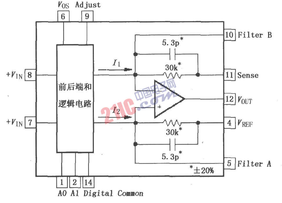 PGA202是数字控制可编程增益G=1、10、100、1000的单片仪表放大器,PGA203提供的增益G=1、2、4、8。两者均有与CMOS或TTL。兼容的输入,便于与微处理器接口。两者都有FET输入和一种新的跨导电路,使得在带宽内的增益几乎保持常数。增益和失调电压采用激光校正,使用时无需外部元件。PGA202/203采用陶瓷封装和塑料封装两种形式,陶瓷封装可在整个工业级温度范围内工作,塑料封装可在整个商业级温度范围内工作。其引脚排列如图所示。