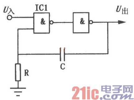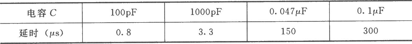 如图所示是一个负脉冲触发的宽延时单稳态触发器,它提供了数秒的延时时间,用于定时精度要求不高的场合。图中延时主要决定于电容C。对于TTL电路来说,R的阻值一般为5~10kΩ。下表中列出了R=5.1kΩ时,延时的实测数据。C的最大容量可达几百微法,延时可达数秒。延时结束后还需要等待一段时间(称恢复时间),就是要等待电容C两端电压不再变化时,方能进行第二次触发,否则,不是电路不能触发,便是所得的延时不稳定。等待第二次触发所需的时间决定于RC。当R=3.4kΩ、C=0.047μF时,实测延时为180μs,恢复时间为78μs。