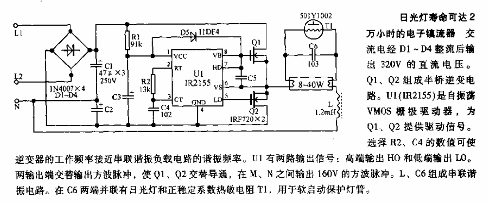 日光灯寿命可达2万小时的电子镇流器电路