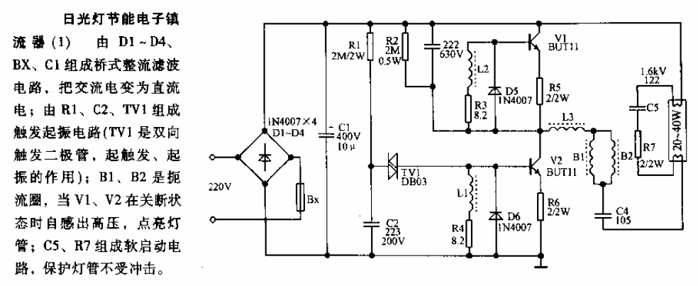 日光灯节能电子镇流器电路1