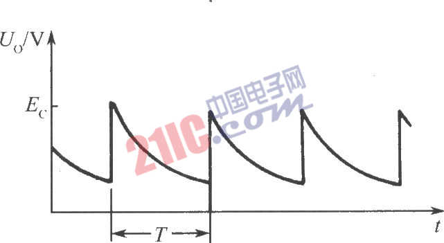 如图所示为光电耦合器组成的最简单的多谐振荡器。接通电源后,由于电容C两端的电压不能突变,以及电阻R的数值大于RL,则此时电源电压Ec主要加在R上,F点电位很低,发光二极管处于截止状态,随着电容的充电电压的增加,F 点电位逐渐增高,增高到一定值时使发光二极管导通发光,光敏三极管导通饱和,输出电压发生跃变使之接近电源电压,而电容上存留电荷则通过光敏三极管、发光二极管通路快速放电,并经此通路对电容进行反向充电,充到一定程度,又促使发光二极管截止进而使光敏三极管截止,电容再次通过电阻R和RL放电,反向充电,发光二极管再次发光,光敏三极管再次饱和,如此循环形成振荡,其波形见下图。电路中的电容C应选用无极性电容,这是因为要进行正反两个方向充电。