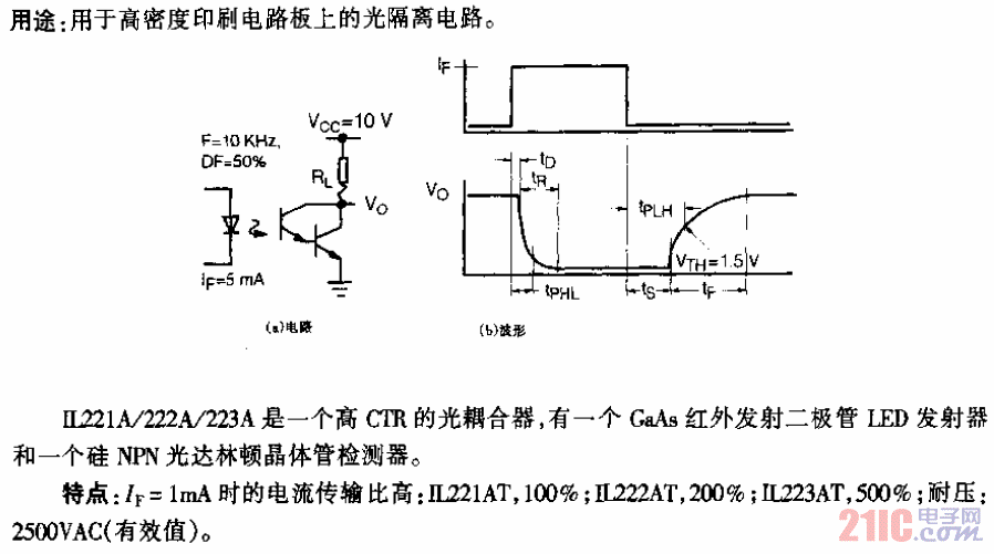 IL221AT/IL222AT/IL223AT型达林顿结构小型表面安装光耦合电路
