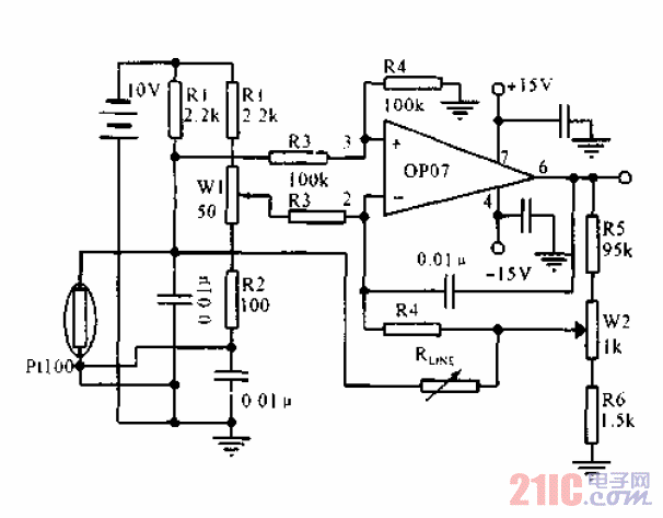 线性化电桥测温电路