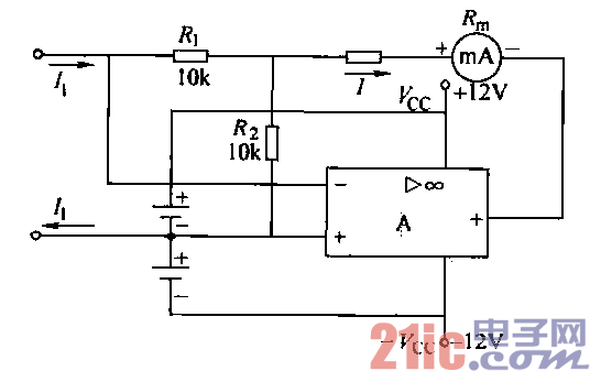 由运算放大器、直流毫安表组成的浮地直流电流表电路如图所示。 图中,运算放大器采用LM324。 在电流测量中,浮地电流的测量是普遍存在的,例如:若被测电流无接地点,就属于这种情况。为此, 应把运算放大器的电源也对地浮动,按此种方式构成的电流表就可像常规电流表那样,串联在任何电流通 路中测量电流。 改变电阻比(R,/R2).即可调节流过电流表的电流,以提高灵敏度。如果被测电流较大时,应给电流 表表头并联分流电阻。