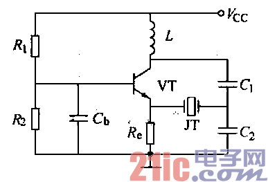 串联型晶体振荡器中,晶体通常接在反馈电路中。图是串联 型晶体振荡器的实际电路. 元件参数参考数值如下: 1)晶体管为3DG6C。 2)电阻:R1 -91ktl,岛-llkfl,RC -lkfl。 3)电容:cb =O. 011F。 4)L和CJ、G的值由振荡器的振荡频率决定。 可以看出,串联型晶体振荡器的振荡频率只有等于石英晶体的串联 谐振频率才能满足起振和振荡条件。