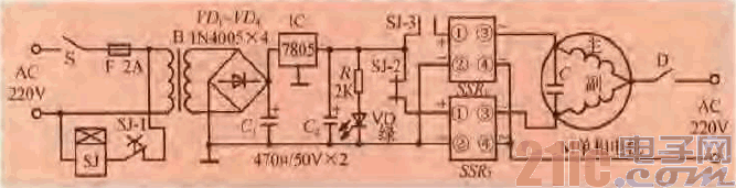 脚导通,SSR,的负戡输出端f3).(4)W:II导通,使电+JlM的副绕组接A交流220V电