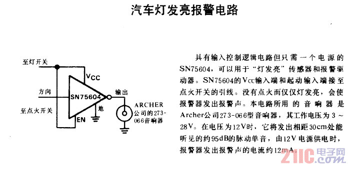 汽车灯发亮报警电路