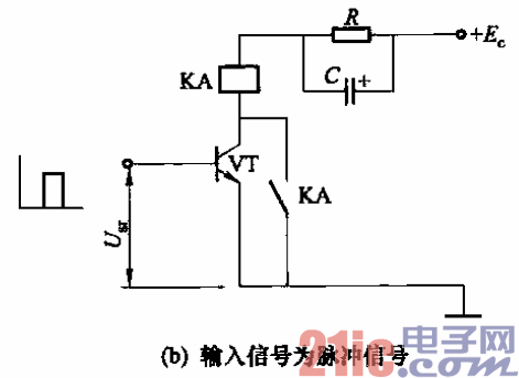 继电器节电电路之四 电路如图所示。图(a)电路的输入信号为直流信号,图 (b)电路的 输入信号为脉冲信号。