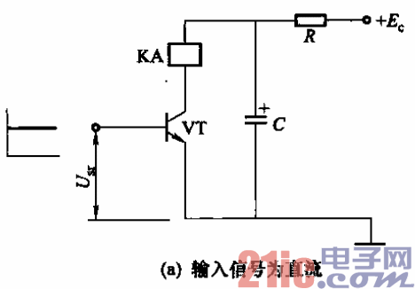 继电器吸合时需较大的启动电流,以便继电器能可靠地吸合,而吸合后则只要有较小的 电流就能维持其吸合状态,以达到节电的目的。 继电器节电线路,原则上也适用于接触器、电磁铁、电磁阀。 (1)继电器节电电路之一 电路如图所示。图(a)电路的输入信号为直流。调整电容C,使继电器 KA可靠吸合,调整限流电阻R,使KA保持电流最小,但能可靠吸住。图 (b)电路 的输入信号为脉冲信号。