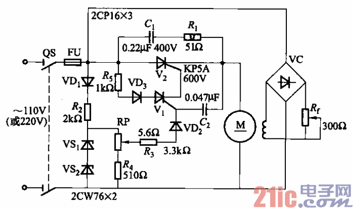它是弧焊机拖动控制电路中最简单的一种。 调节电位器Rr,可改变直流电动机的励磁电流。调节RP,可改变直流电动机的电枢电 压,达到调速的目的。