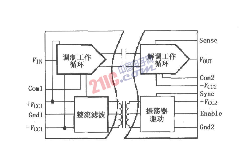 ISO107隔离放大器通过隔离栅提供信号和电源,采用陶瓷侧边引脚混合封装,内部包括了一个变压器耦合DC/DC变换器和一个电容耦合信号通道。其电源是利用隔离输入侧的外部调整电路提供,一个内部电流限制电路在当变换器对地短路时进行保护,软启动特性限制电源启动时的初始电流,多通道同步可以将TTL时钟信号应用于并行同步脚。在保持信号解调器有效状态下,使能控制可关断发送驱动器,这个特性可方便地用于低功率应用场合以减小静态电流。宽的隔离脚距和内部绝缘使得其对2500Vrms连续AC额定隔离等级有足够的裕量,符合UL544测试方法的100%隔离栅破坏性试验确保了其可靠性。低隔离栅电容使AC漏电流最小。ISO107使用方便,可用于像PC机这样紧凑结构的电路板设计。ISO107的引脚排列如图所示。