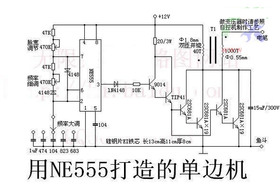 NE555打造的单边机电鱼机电路图