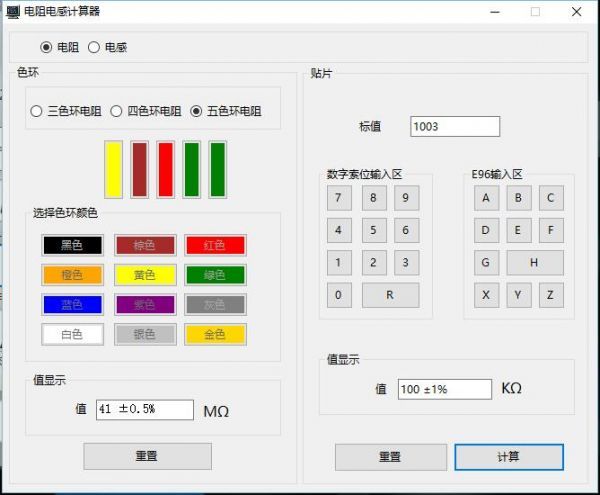 对于像我一样永远记不得色环的来说,方便了。同时可以计算电阻、电感,直插和贴片代码值。