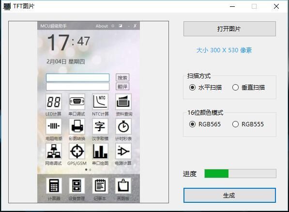 用于TFT屏的彩色图片生成,保存为C语言数组格式