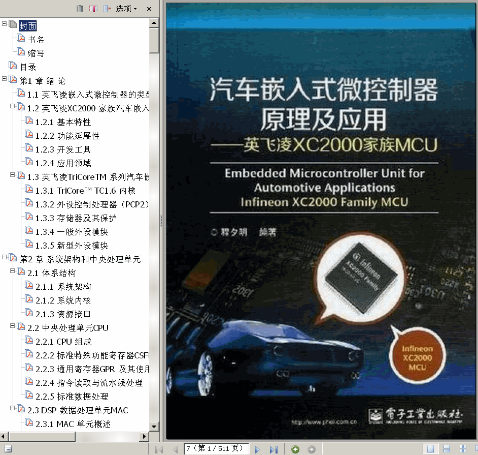 汽车嵌入式微控制器原理及应用:英飞凌XC2000家族MCU 511页 超清书签版.pdf.pdf(10.4 MB, 下载次数: 761)2014-2-26 15:08 上传点击文件名下载附件