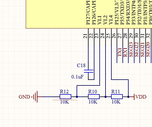 用的是瑞萨的R7F0C004驱动的,用了外部电阻1/3分压的方式,4个COM口