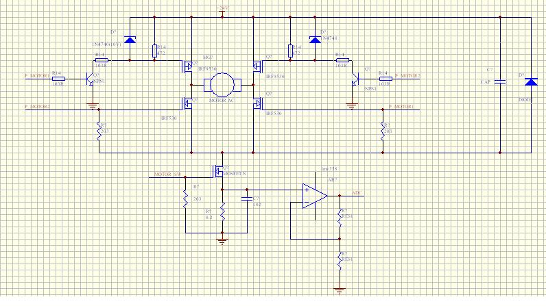 功能:实现电机正反转控制。上面4只只做完全的开关。下面那个做PWM调速。