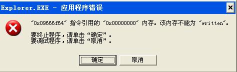 0X000000该内存不能为read的解决方法 运行某些程序的时候,有时会出现内存错误的提示,然后该程序就关闭。 “0x????????”指令引用的“0x????????”内存。该内存不能为“read”。 “0x????????”指令引用的“0x????????”内存,该内存不能为“written”。 以上的情况相信大家都应该见到过,甚至说一些网友因为不爽于这个经常出现的错误提示而屡次重装系统。相信普通用户应该不会理解那些复杂的十六进制代码。 出现这个现象有方面的,一是硬件,即内存方面有问题,二是软件,这就有多方面的问题了。 一:先说说硬件: 一般来说,电脑硬件是很不容易坏的。内存出现问题的可能性并不大(除非你的内存真的是杂牌的一塌徒地),主要方面是:1。内存条坏了(二手内存情况居多)、2。使用了有质量问题的内存,3。内存插在主板上的金手指部分灰尘太多。4。使用不同品牌不同容量的内存,从而出现不兼容的情况。5。超频带来的散热问题。你可以使用MemTest 这个软件来检测一下内存,它可以彻底的检测出内存的稳定度。 二、如果都没有,那就从软件方面排除故障了。 先说原理:内存有个存放数据的地方叫缓冲区,当程序把数据放在缓冲区,需要操作系统提供的“功能函数”来申请,如果内存分配成功,函数就会将所新开辟的内存区地址返回给应用程序,应用程序就可以通过这个地址使用这块内存。这就是“动态内存分配”,内存地址也就是编程中的“光标”。内存不是永远都招之即来、用之不尽的,有时候内存分配也会失败。当分配失败时系统函数会返回一个0值,这时返回值“0”已不表示新启用的光标,而是系统向应用程序发出的一个通知,告知出现了错误。作为应用程序,在每一次申请内存后都应该检查返回值是否为0,如果是,则意味着出现了故障,应该采取一些措施挽救,这就增强了程序的“健壮性”。若应用程序没有检查这个错误,它就会按照“思维惯性”认为这个值是给它分配的可用光标,继续在之后的执行中使用这块内存。真正的0地址内存区储存的是计算机系统中最重要的“中断描述符表”,绝对不允许应用程序使用。在没有保护机制的操作系统下(如DOS),写数据到这个地址会导致立即当机,而在健壮的操作系统中,如Windows等,这个操作会马上被系统的保护机制捕获,其结果就是由操作系统强行关闭出错的应用程序,以防止其错误扩大。这时候,就会出现上述的内存不能为“read”错误,并指出被引用的内存地址为“0x00000000“。内存分配失败故障的原因很多,内存不够、系统函数的版本不匹配等都可能有影响。因此,这种分配失败多见于操作系统使用很长时间后,安装了多种应用程序(包括无意中“安装”的病毒程序),更改了大量的系统参数和系统档案之后。 在使用动态分配的应用程序中,有时会有这样的情况出现:程序试图读写一块“应该可用”的内存,但不知为什么,这个预料中可用的光标已经失效了。有可能是 “忘记了”向操作系统要求分配,也可能是程序自己在某个时候已经注销了这块内存而“没有留意”等等。注销了的内存被系统回收,其访问权已经不属于该应用程序,因此读写操作也同样会触发系统的保护机制,企图“违法”的程序唯一的下场就是被操作终止执行,回收全部资源。计算机世界的法律还是要比人类有效和严厉得多啊!像这样的情况都属于程序自身的BUG,你往往可在特定的操作顺序下重现错误。无效光标不一定总是0,因此错误提示中的内存地址也不一定为 “0x00000000”,而是其它随机数字。