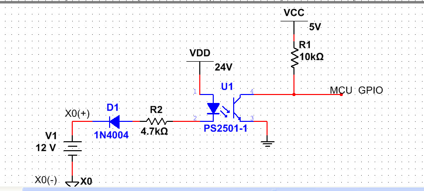 但 VDD 的0V 应与 V1 的0V(X0)连接,否则光隔输入不成回路,无法工作。
