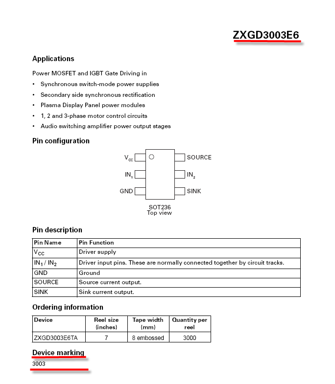 小弟有一板子  上面有一个封装为sot23-6的封装,丝印为3003  看样子用来驱动mos管的,应该是一个集成的推挽电路的芯片,貌似也叫图腾。望各位坛友如果有用过的  指点明路,告诉我啥型号的。或者有推荐这样的一个集成推挽电路的芯片,万分感谢
