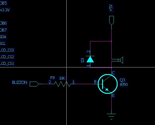 BUZZ --> Q3 B, OE --> Q3 E, 如果OE = 0 时驱动能力足够带动蜂鸣器和R2 R5, 可直接驱动, 否则Q3 C经上拉 --> Qx (new 8050!) --〉蜂鸣器