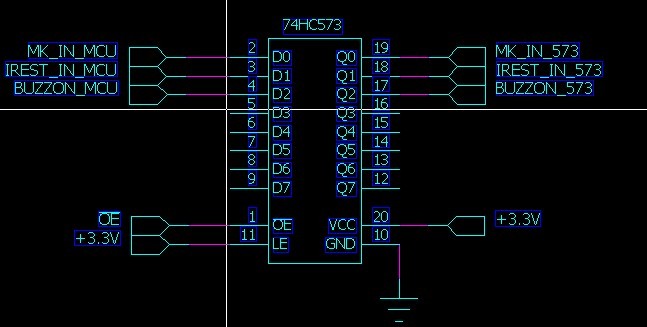 2.74HC574 是锁存器, 上电时也有一个不确定的状态, OE无效时输出为三态, 输出需要合适的上拉或下拉电阻, 若觉得浪费,可以改用四或非门,OE为0且控制逻辑为0时输出才为高。