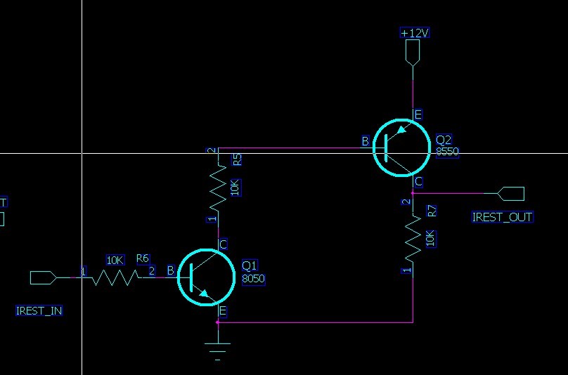 IREST--> Q1 8050 基极, OE --> Q1 8050 E极