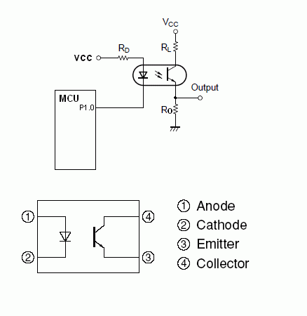 RL和Ro的取值在决定了光耦在特定LED驱动电流下的导通、截止转换时间和高电平幅值,一般RL并不需要,Ro的取值在数K至一二十K欧姆范围,普通低速电路不必特别关心,高速电路则需根据输入信号的占空比、沿斜率要求等根据光耦参数严格取值。