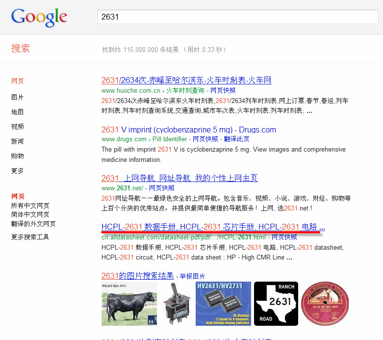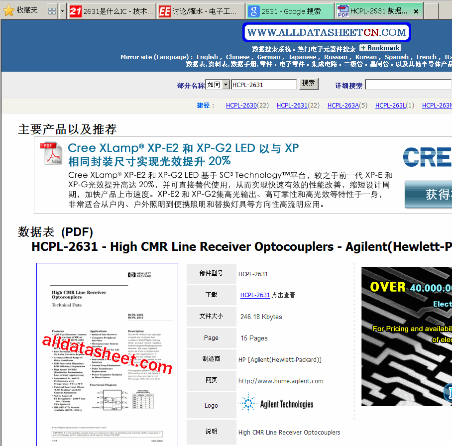 2. 发现"HCPL-2631 数据手册",再点击进去,核对封装,正确,你就成功了