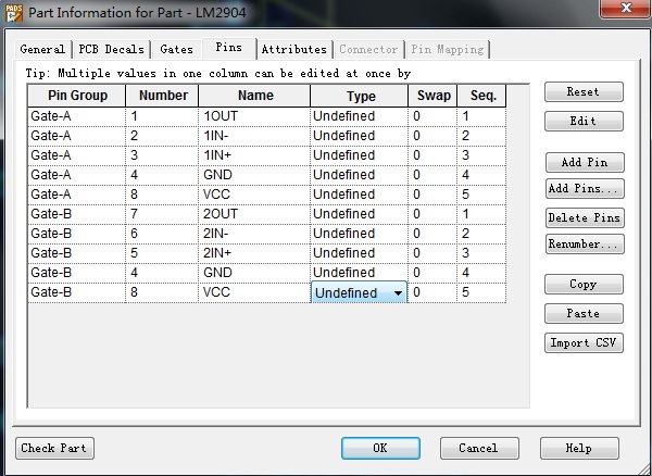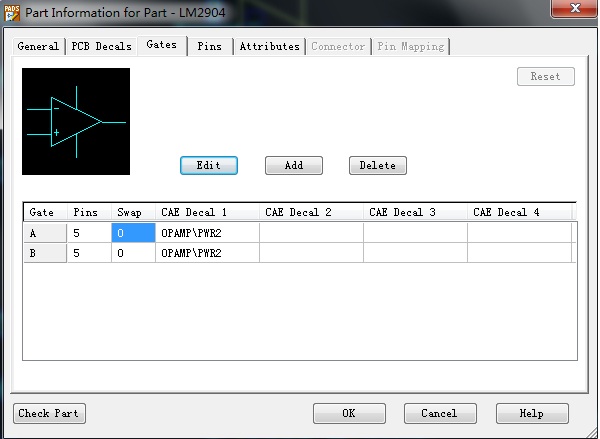 在做多运放的原理图时候发现一个问题,有的芯片中有多个运放如LM2904内有两个运放,它们都公用一对电源、地。在pads中可以将它们作为gate,此时的电源管脚该如何处理才能显示在原理图中。