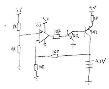 你这个电路,电压最高充电到4V,即同运放正输入端基准相同。9012跟9013之间加一个电阻。