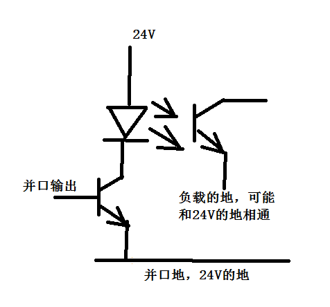 但是,由于负载供电也是用的图中这个24V,所以光耦里面的地可能和24V的地是联通的。不知道是不是有关系。