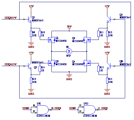 我最近搭了一个驱动70V,35W电机的电路,图如下: