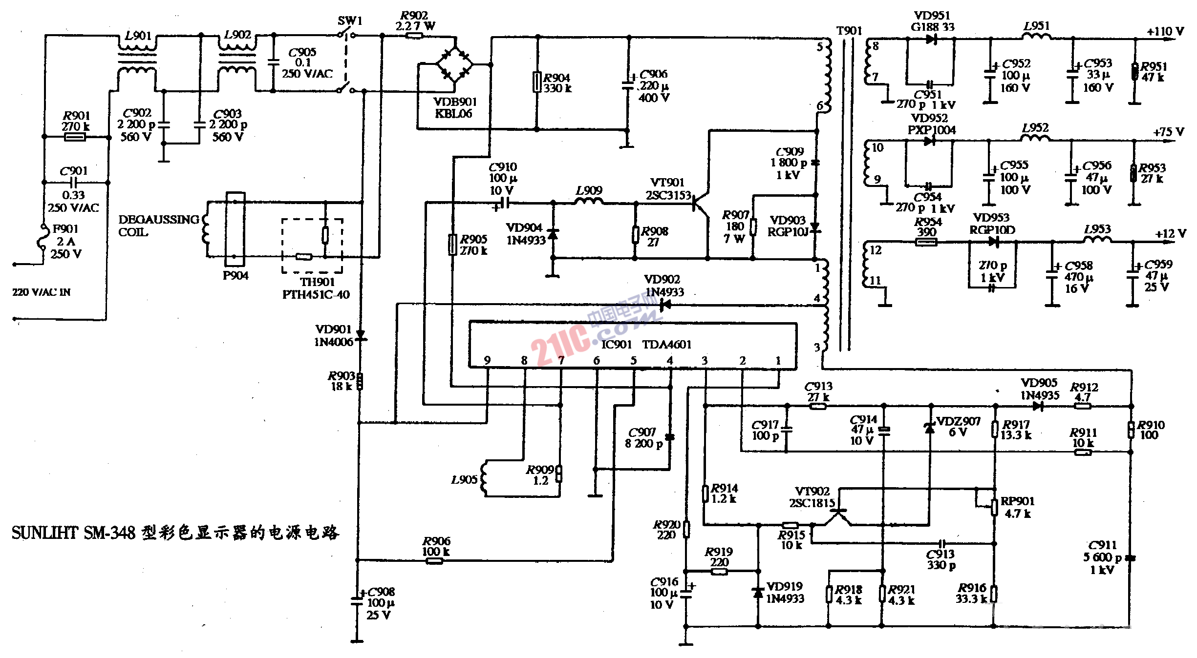 SUNLIHT SM-348型彩色显示器的电源电路图