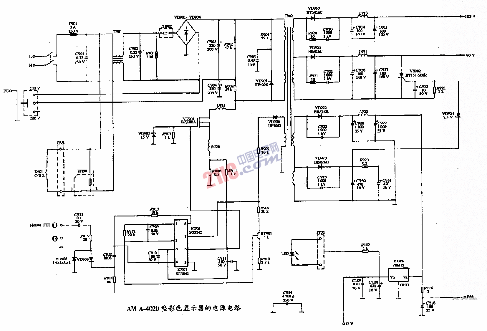 AM A-4040型彩色显示器的电源电路图