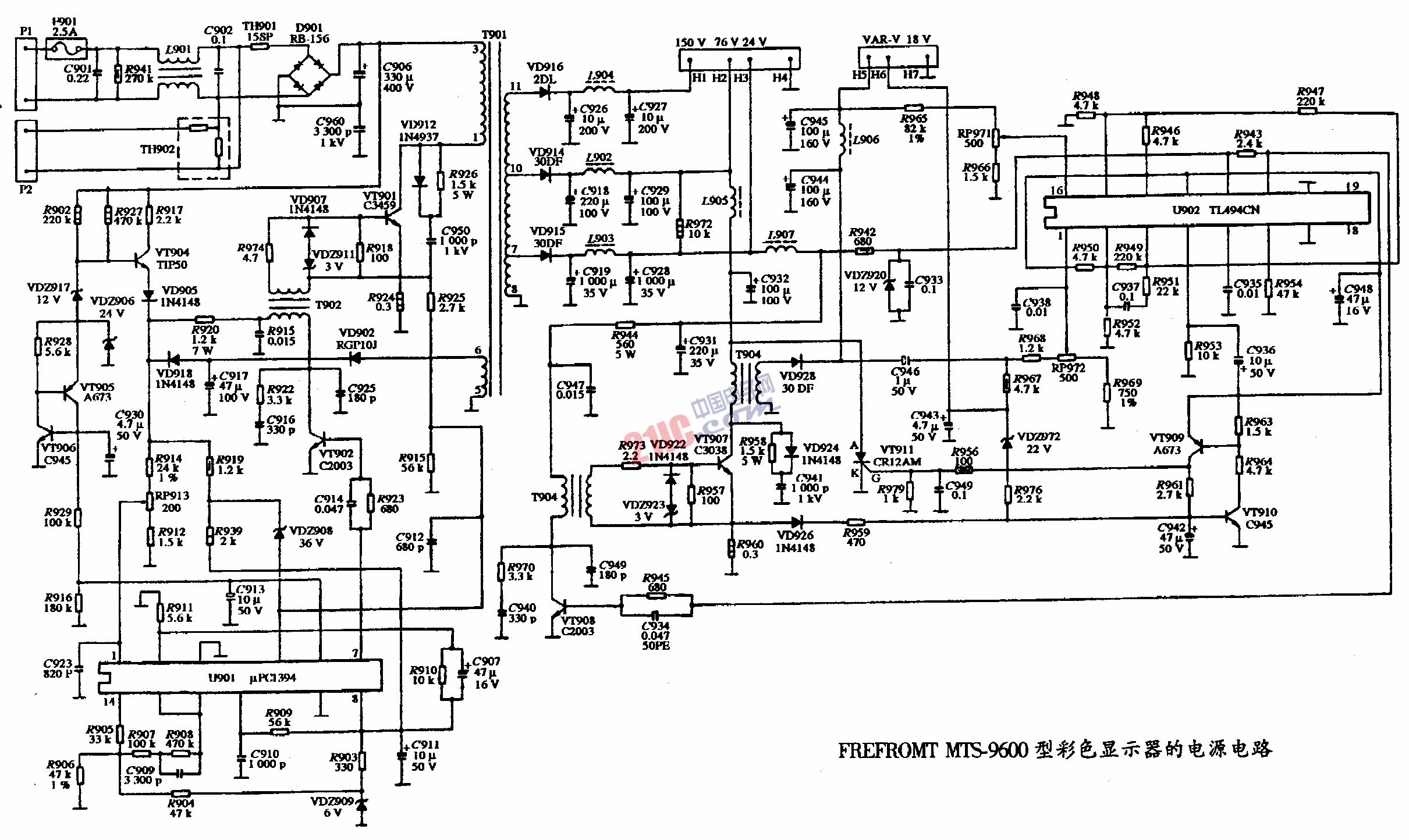 FREFROMT MTS-9600型彩色显示器的电源电路图