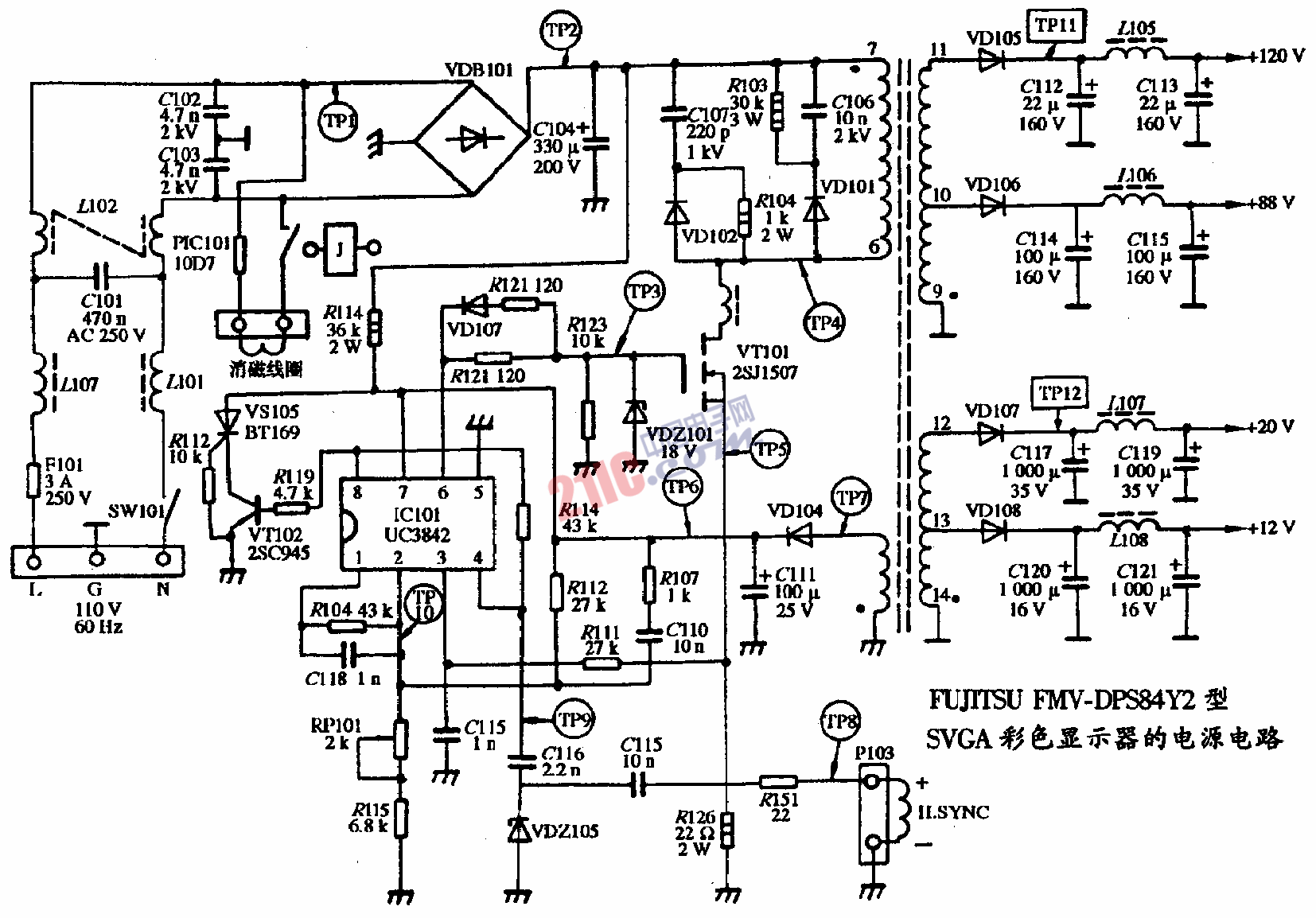 FUJITSU FMV-DPS84Y2型SGVA彩色显示器的电源电路图