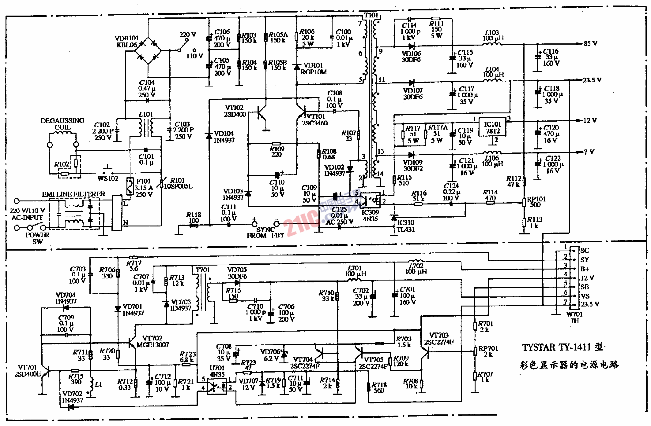 TYSTAR TY-1411型彩色显示器的电源电路图