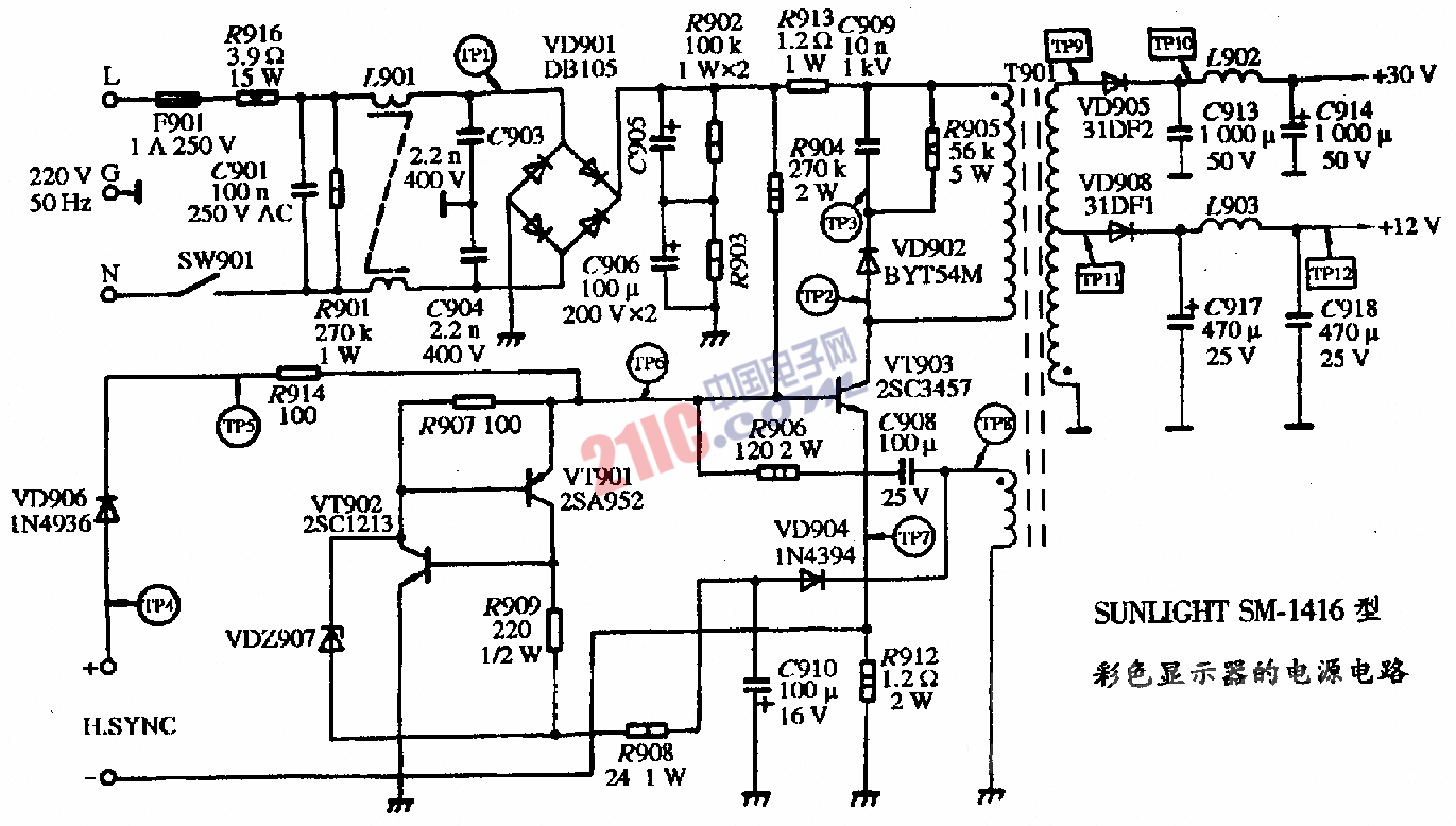 SUNLIHTSM-1416型彩色显示器的电源电路