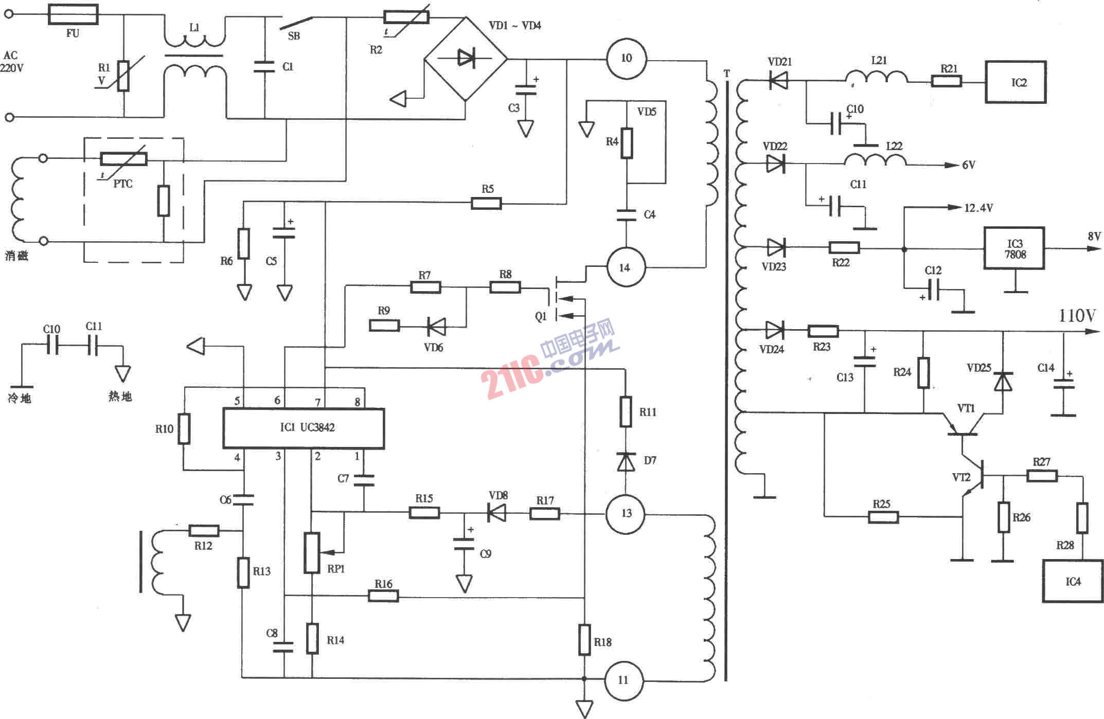 联想LX-Pl4C2型彩显开关电源(UC3842)