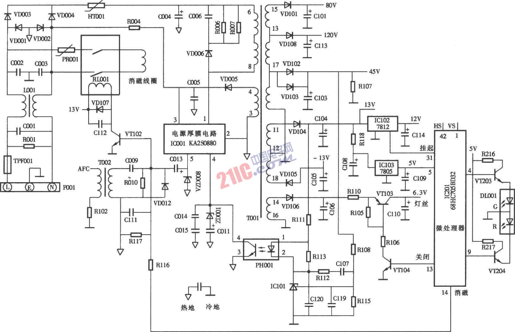 DAEW00(大宇)CMC-7108型17英寸彩显开关电源(KA2S0880) 电路