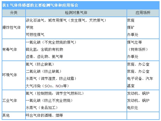 有毒和可燃性气体检测是气敏传感器最大的市场。主要应用于石油、采矿、半导体工业等工矿企业以及家庭中环境检测和控制。在石油、石化、采矿工业中,硫化氢、一氧化碳、氯气、甲烷和可燃的碳氢化合物是主要检测气体。在半导体工业中最主要是检测磷、砷和硅烷。家庭中主要是检测煤气和液化气的泄漏以及是否通风。