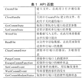 使用Delphi6建立串行通信程序及组件, Delphi调用 Windows API函数来建立通信机制。表1是所使用的API函数,使用Delphi调用API函数建立计算机与COM口的通信。源程序在uses区段中加入Windows。