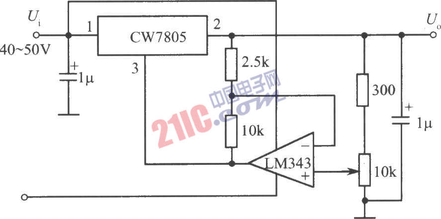 由CW7800和LM343构成1~35V的可调输出稳压电源电路