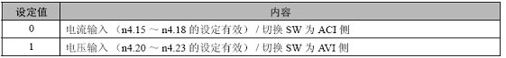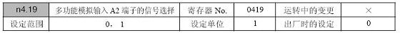 切换多功能模拟输入的电流输入/ 电压输入时,需在设定n4.19 的同时切换多功能模拟输入方式切换SW