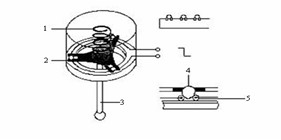 1.机械接触式测头:机械接触式测头为刚性测头,根据其触测部位的形状,可以分为圆锥形测头、圆柱形测头、球形测头、半圆形测头、点测头、V型块测头等如图1所示。这类测头的形状简单,制造容易,但是测量力的大小取决于操作者的经验和技能,因此测量精度差、效率低。目前除少数手动测量机还采用此种测头外,绝大多数测量机已不再使用这类测头。