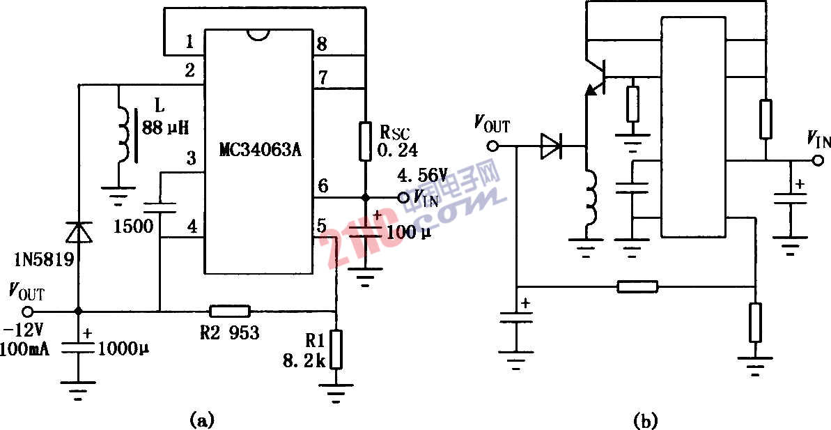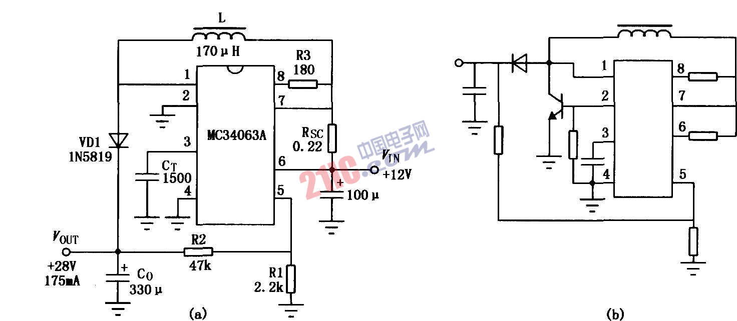 MC3406A用作升压式DC-I)C变换器电路: